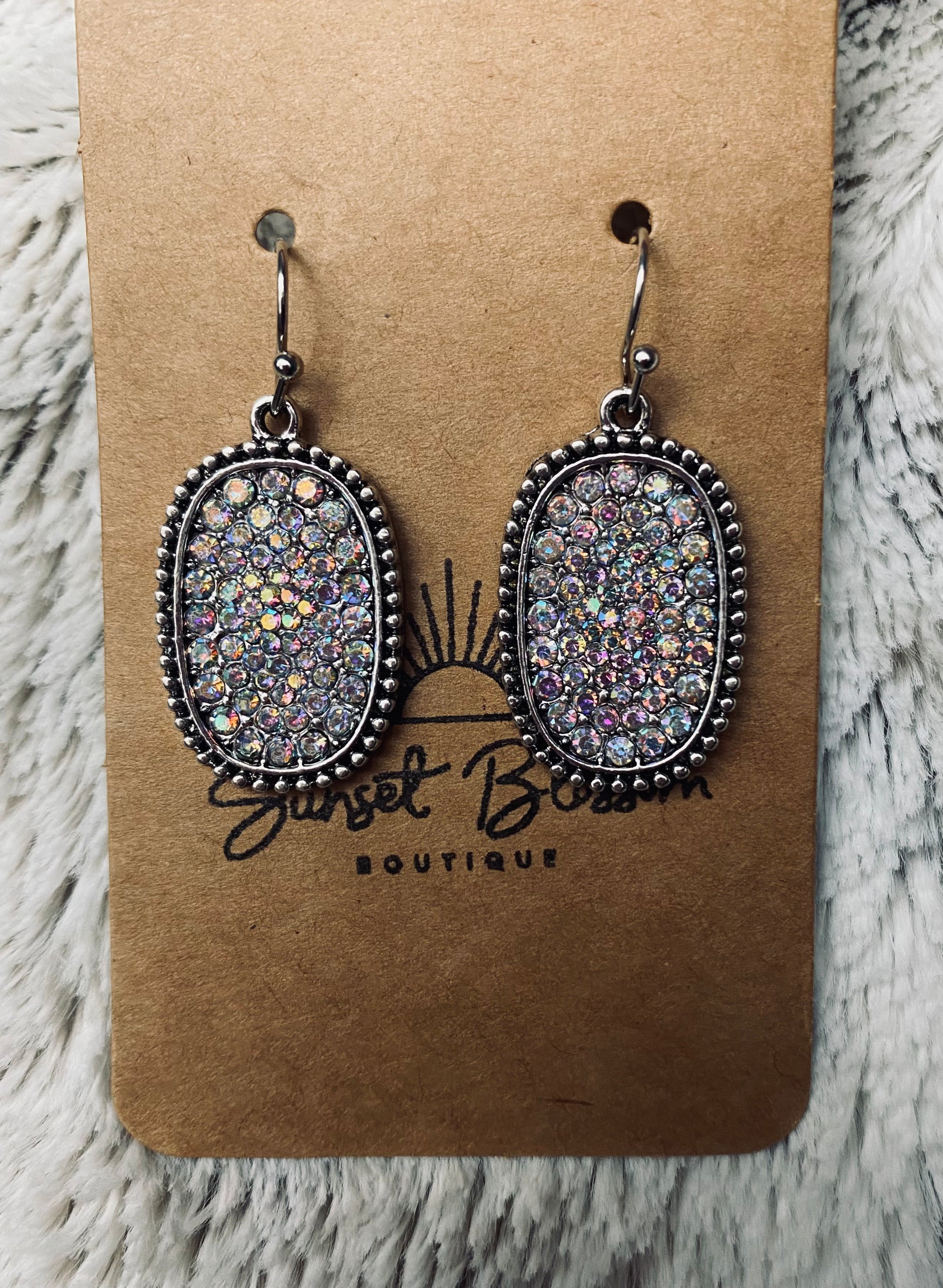 Aurora borealis dangling earrings with silver frame